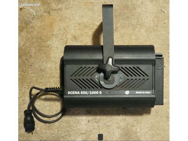 Le Scena 650/1000 Fresnel de D.T.S. est un projecteur de théâtre qui peut être utilisé avec une lampe GX9 de 650 ou 1000 watts. Le diamètre de la lentille Fresenel est de 150 mm. De plus, le cadre du filtre couleur dispose d'une grille de protection. Grâce au support, le phare Fresnel Scena 650/1000 peut être installé dans presque toutes les positions. Les dimensions sont de 370 x 255 x 350 mm et le projecteur de théâtre pèse 6 kg.( Quantité : 6 )