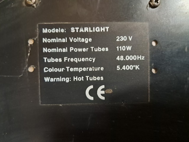 - Lampes incluses : 2 lampes fluorescentes spéciales à 5400°K (lumière de jour).