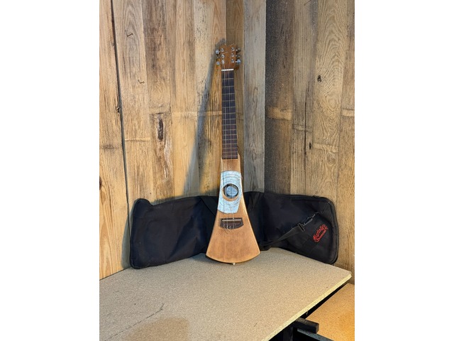 ### Martin Backpacker Steel String (électro) — custom « punk médiéval »Guitare de voyage **Martin Backpacker** (cordes acier) en **version électro**. Instrument unique, **customisé** avec un look « punk médiéval ».