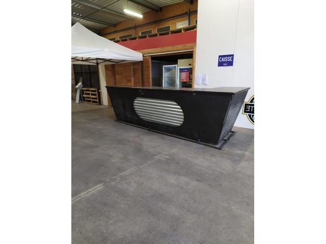Matériaux : structure métallique, plateau en bois, façade en tôle galvanisée