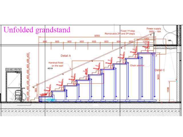 Idéale pour salles polyvalentes, auditoriums, équipements sportifs et culturels, avec un excellent gain de place une fois repliée.