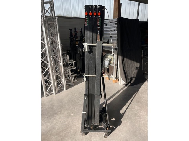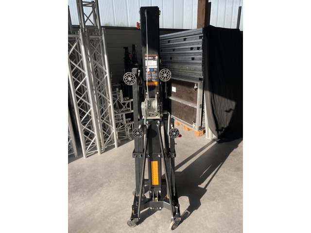 - Vendu par 2.Cette tour de levage robuste à chargement par l’avant est idéale pour lever des systèmes line array, des truss et des écrans LED. Elle peut lever des charges de 250 kg jusqu’à une hauteur de 6,5 mètres. En soulevant les charges directement du sol, l’effort de l’utilisateur est réduit au minimum. Les caractéristiques de sécurité comprennent une base renforcée, un système de verrouillage automatique des pieds, des goupilles de sécurité et un niveau à bulle circulaire vous aidant à mettre la tour à niveau pour une stabilité optimale.