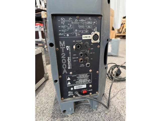 Enceintes actives Montarbo MT200A + flight cases – lot de 2Vends 2 enceintes de retour actives Montarbo MT200A avec leurs 2 flight cases de transport en mousse.