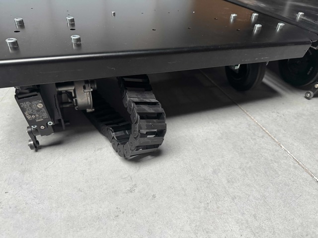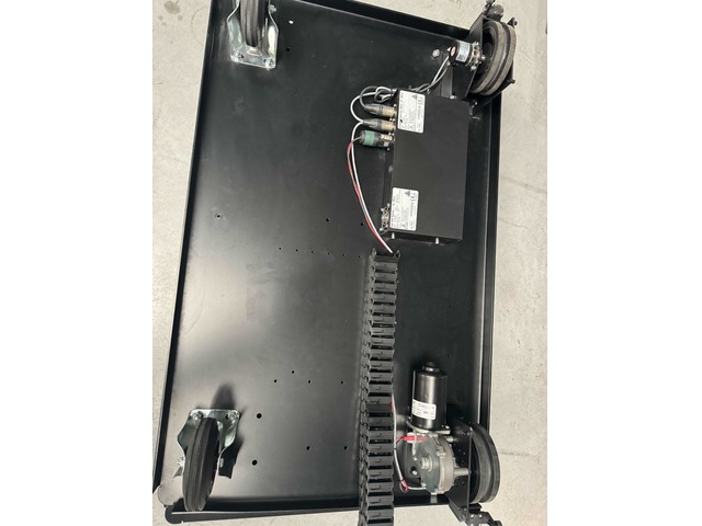 2 plateaux roulants 96x60cm avec 3 rails de 2m et 2 rails de 1m et cables.Idéal pour contrôle par DMX par exemple pour ouverture / fermeture d'écran ou de porte sur scène etc ..;