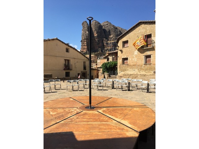 * Cage d'arrière scène : Hauteur 218 cm/Largeur: 210 cm/Profondeur 80 cm + deux pendrillons lestés