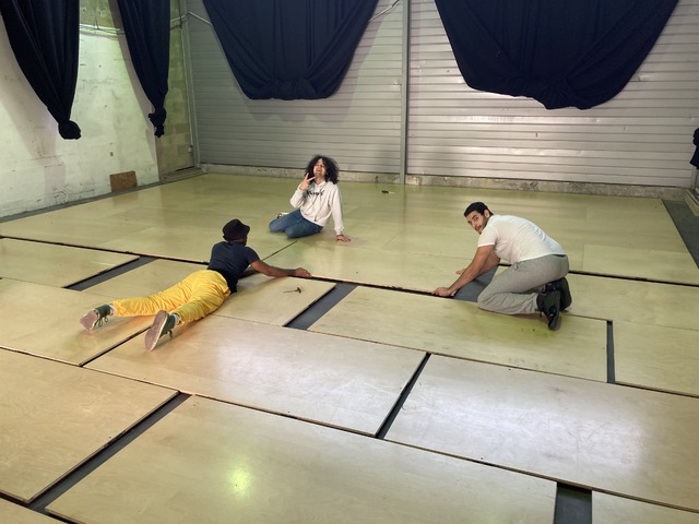Le bois est usé et rayé par endroits mais il est en parfaite condition (patins et fixations). Idéal pour être recouvert d'un tapis de danse.