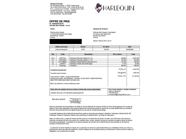 Bonjour,Nous vendons notre plancher Harlequin acheté 10 000€ en septembre 2020.