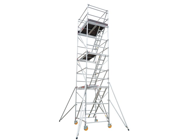 - échafaudage en aluminium léger, sur roues à freins, avec échelle intégrée en plan incliné.