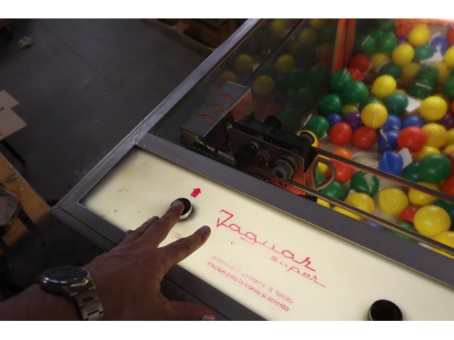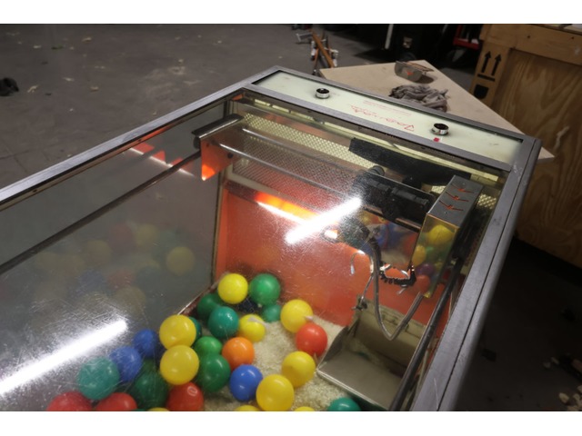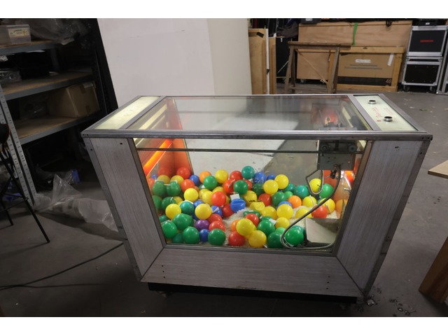 Attrape-nigauds / Pince / Jeu fête foraineTrès belle pince de fête foraine "super jaguar" italienne, années 1950-1960. Exploitée en Belgique & en France avant d'être transformée en installation artistique. Le monnayeur a été modifié par nos soins pour qu'elle soit jouable avec un bouton-poussoir sans mettre de pièce. Vieille machine, capricieuse. Le mécanisme fonctionnait...mais on a oublié comment. A réviser, donc, et vendue en l'état, ce que le prix reflète.