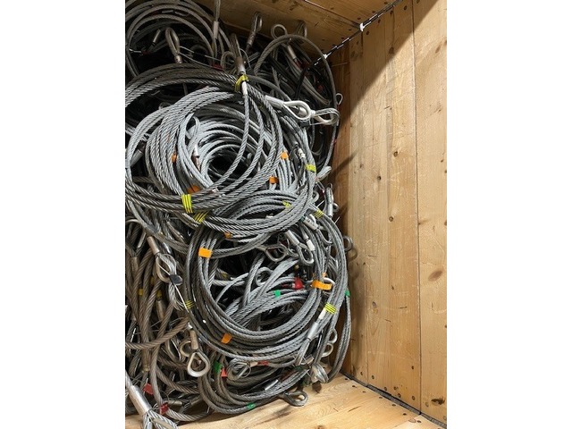 De nombreuses élingues en aciers. De toutes tailles en métrique.Les élingues ont majoritairement un diam de 8 mm. Elles sont toutes en bonne état. Les dernières vérifications du bureau de contrôle n'ont pas été réalisées car nous ne les utilisons plus.