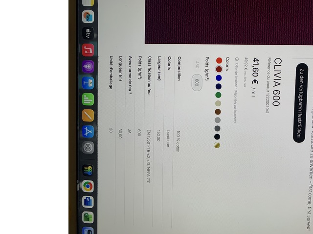 Vends 2 rouleaux de velours de scène de la marque Gerriets . Réference Clivia 600, coloris Spécial: vin rouge.Toujours dans leurs cartons d'origine.Composition 100 % coton