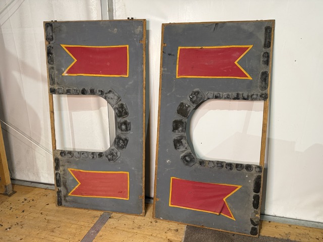 - Panneaux solides, en bois, prévus pour l’extérieur (fêtes médiévales, spectacles, animations)