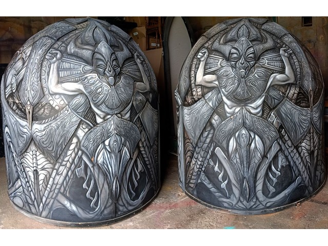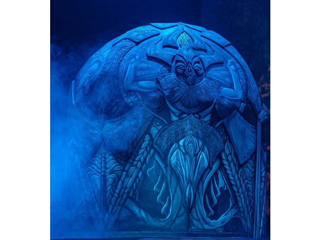 Je mets en vente ce décor de théâtre composé de deux structures ogivales sur roulettes, conçues pour créer quatre ambiances différentes :deux sculptures démoniaques.