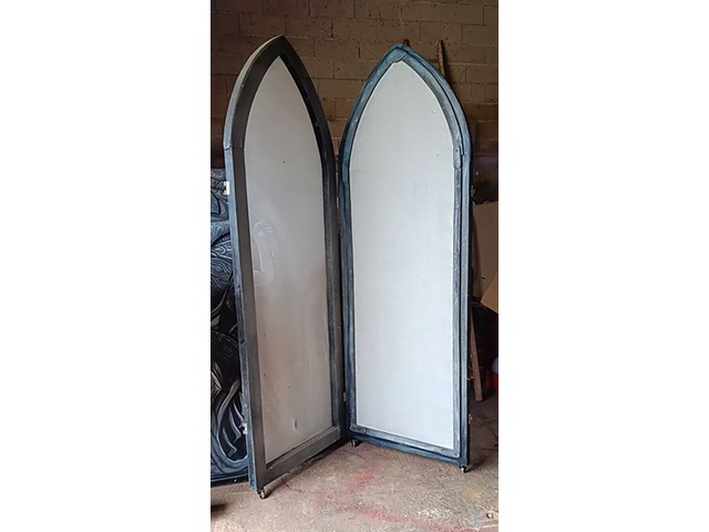 Je propose à la vente 2 ensemble de 3 ecrans de projection tulle d'une hauteur de 250 cm et d'une largeur de 240 cm, composés de trois vantaux mesurant chacun 80*250 cm. Ils forment des vitraux démontables par couplets et par sections et sont montés sur des roulettes pivotantes. Ces ecran sont fabriqués en tulle de projection, un tissu qui permet la transparence pour révéler une scène éclairée par derrière ou une surface de projection opaque si éclairée ou projetée par l'avant.