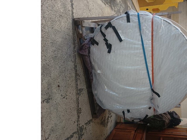 Lit circulaire, matelas unique avec sa forme ronde, base en deux morceaux a fixer ensemble