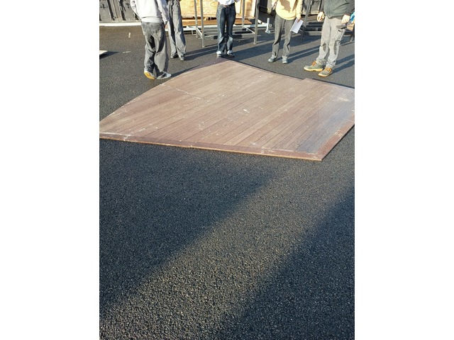 Plancher décoratif en contreplaqué, composé de 4 panneaux numérotés formant un trapèzeConçu pour un usage scénique, événementiel ou d’exposition, il peut être utilisé comme base de décor, sol de scène ou élément d’installation.