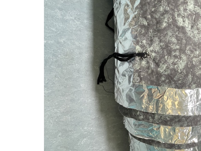 Hauteur : 7,60 m (manque 80 cm en bas d’un des lés)