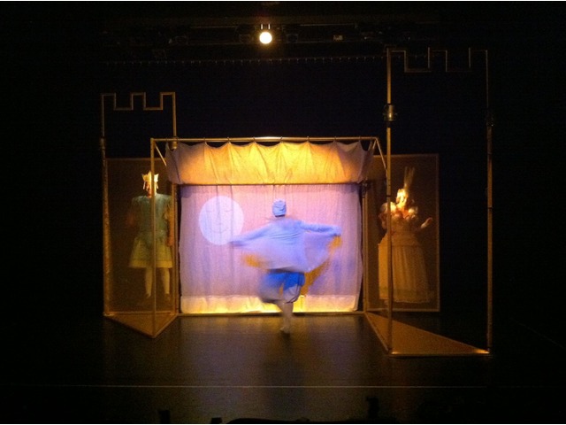 Très beau Décor chateau (structure démontable en metal doré fait de 2 portes avec tulle doré pour jeu de transparence)1 grand rideau a installer (ou pas) sur la barre centrale