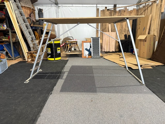 Structure scénique prototype – 2 plateaux pliables - Neuf jamais serviPrototype de deux plateaux scéniques d’environ 1,50 m de hauteur, conçus pour un projet de spectacle finalement abandonné.