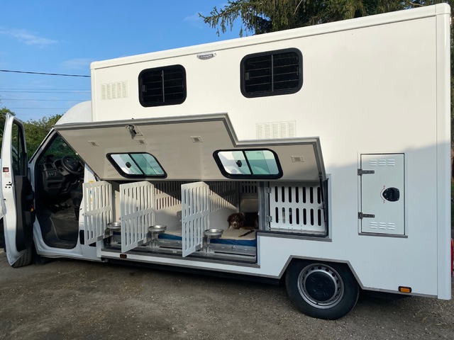 Camion prototype unique pour le transport multi‑espèces : 25 ans d’expertise Dog Trainer et savoir‑faire reconnu du carrossier TIB.Transportez vos animaux en toute sérénité, quelle que soit la météo. Température maîtrisée de -10 °C à +38 °C grâce à un système climatisation/chauffage performant. Espaces généreux pensés pour le bien‑être animal sur longue distance, bien au‑delà des normes réglementaires. Autonomie garantie par batteries auxiliaires : tranquillité assurée même en cas d’imprévu.