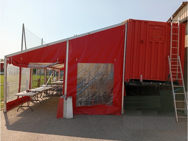 1 tente 12x5 structure alu, accrochée directement sur la semi