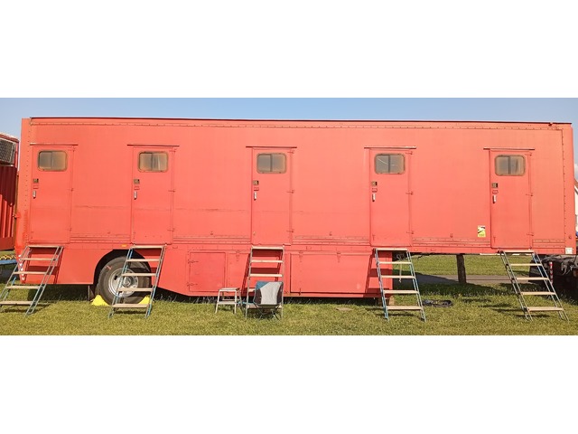 La Remorque logement est équipée de 5 chambres avec chacune 1 lit superposé et un meuble de rangement, la remorque est équipée d’une clim réversible pilotable d’une télécommande et réglable dans chaque chambre via une bouche d’aire. Longueur 11m simple essieu équipé d’un Rockinger à l’arrièreLien photos : Remorque logement 10 places