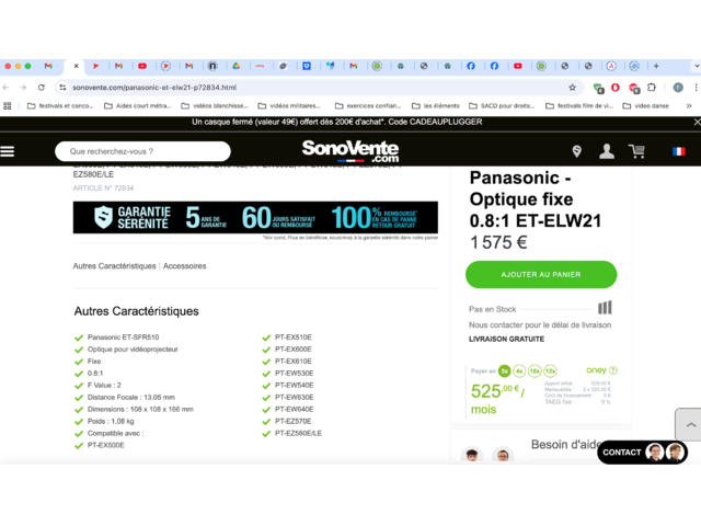 En photo la page du site Sonovente où il est vendu à 1575€.