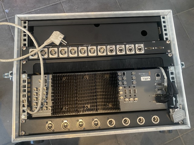 Vends régie vidéo complète idéale pour captation live, événementiel ou plateau multicam :- Pupitre mélangeur ATEM 2 M/E Broadcast Panel Blackmagic, installé dans un flycase conçu sur mesure Rythmes et Sons