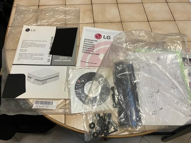 Vidéoprojecteur LG AF115 FHD+ sa toile blanche 180x180cm + pied d'installation(Avec pied spécifique pour installation au plafond, mode image inversée = paramétrable dans le menu vendu