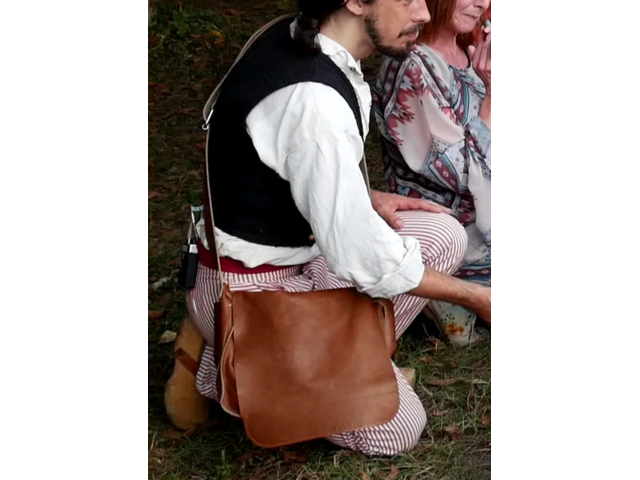 Lot de **2 sacoches en cuir**, solides et pratiques, idéales pour **spectacles**, **animations médiévales ou terroir**, ou usage quotidien.Fonctionnelles et bien conçues, avec de multiples rangements.
